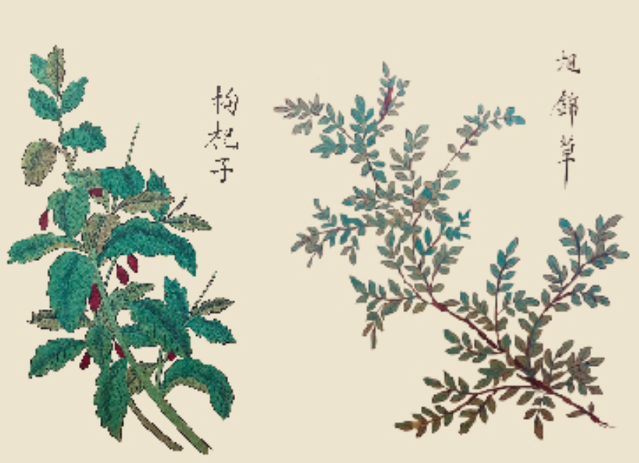 图版说明:《金石昆虫草木状》(1617-1620年,明)中的两种地黄。该书以《本草品汇精要》为底本,描绘有一千余种植物。作者(文俶)先通过临摹本草图谱,将原本属于本草知识范畴的图像引入到纯粹绘画艺术领域。