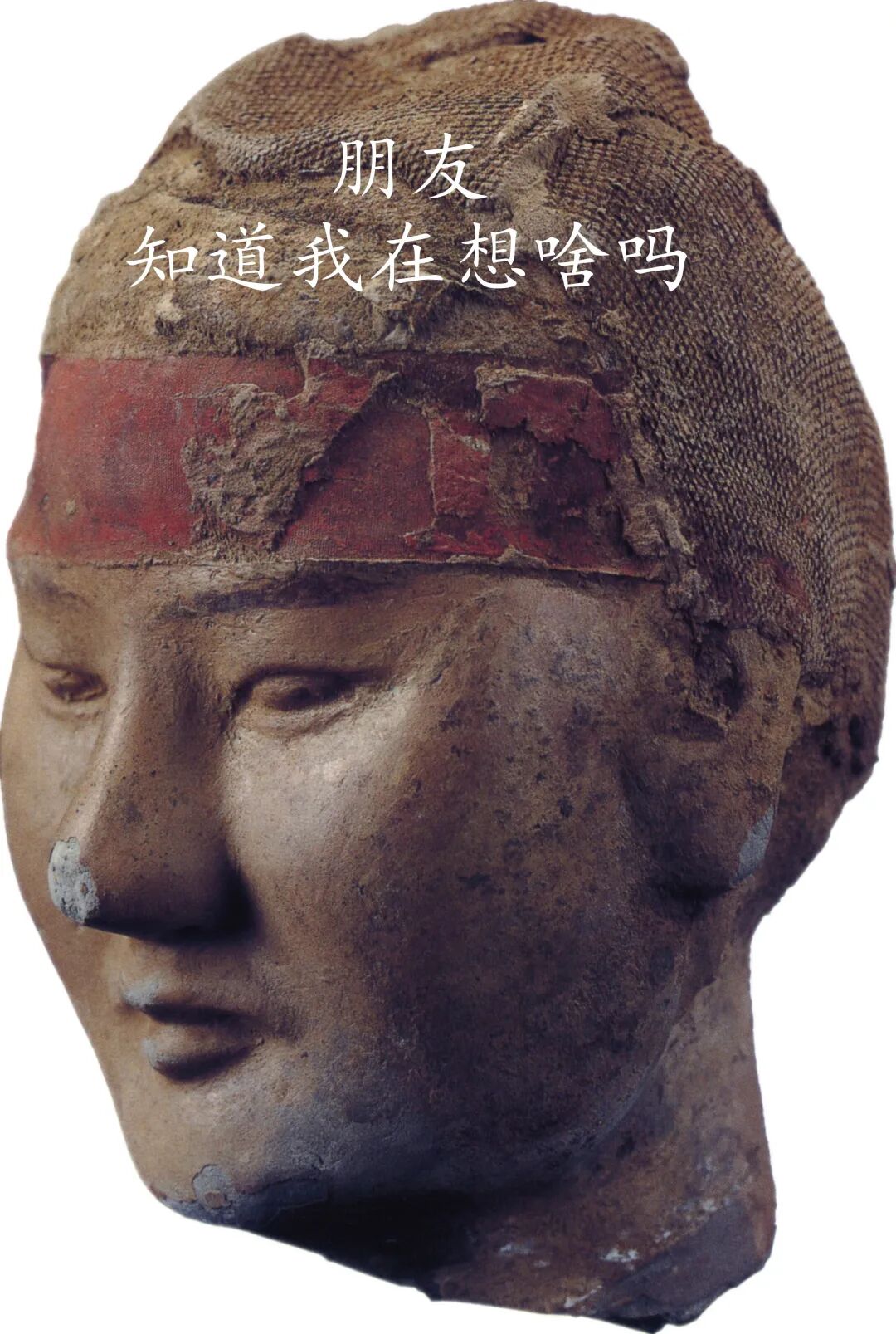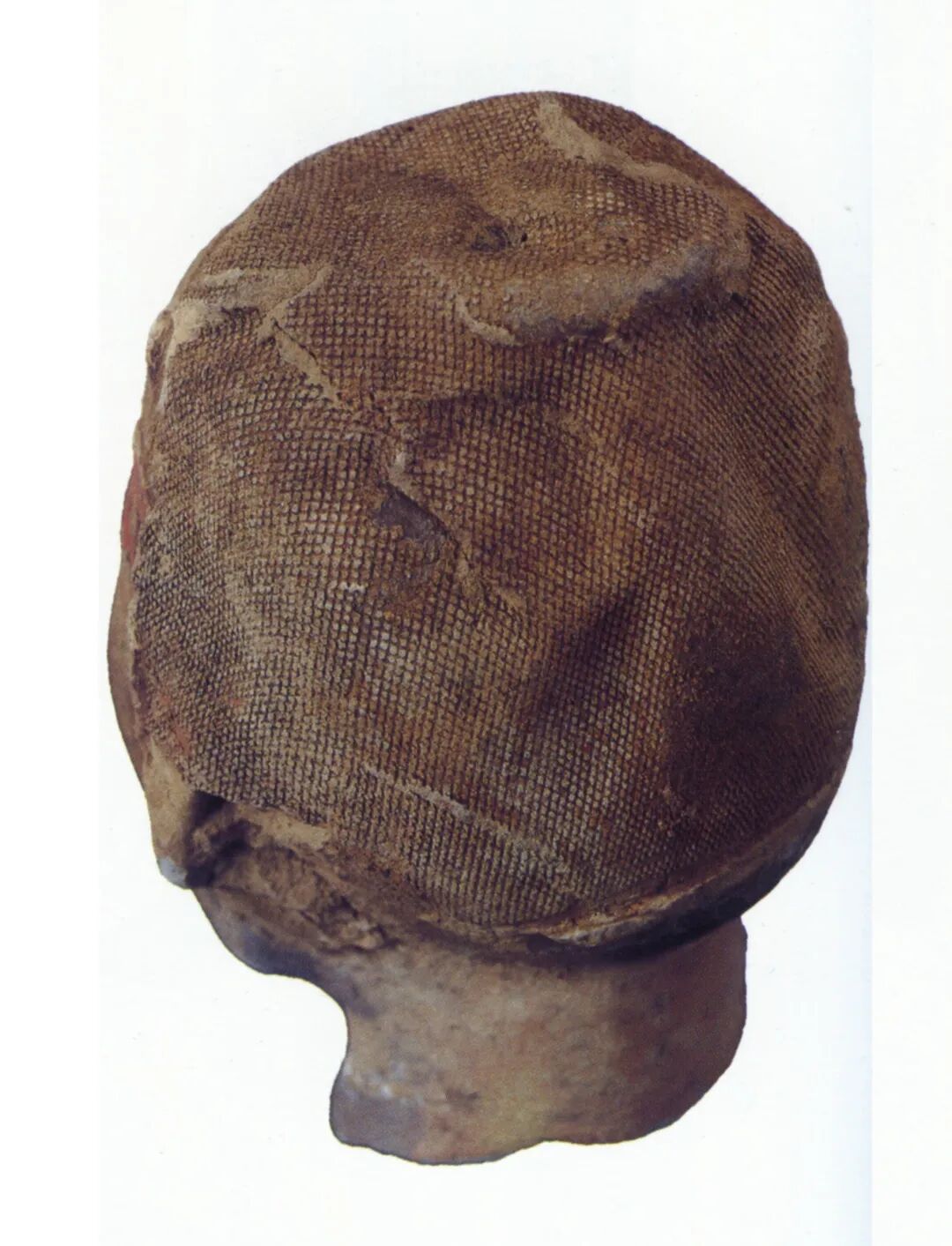汉阳陵从葬坑出土残存丝织物痕迹的俑头