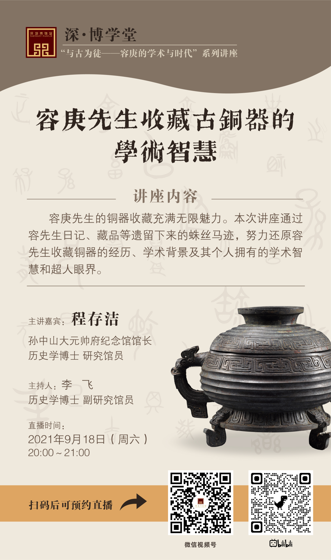 容庚先生的铜器收藏充满无限魅力。本次讲座通过容先生日记、藏品中遗留下的蛛丝马迹,努力还原容先生收藏铜器的经历、学术背景及其个人拥有的学术智慧和超人眼界。