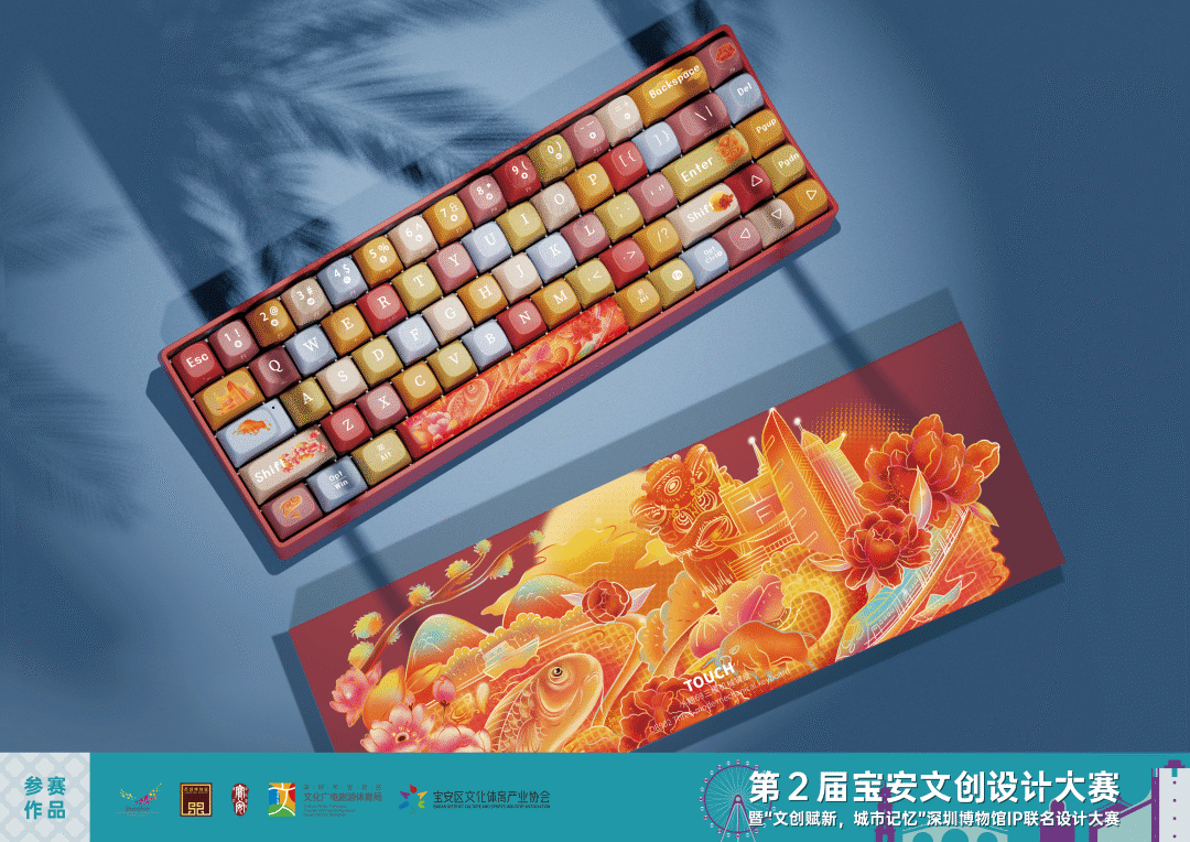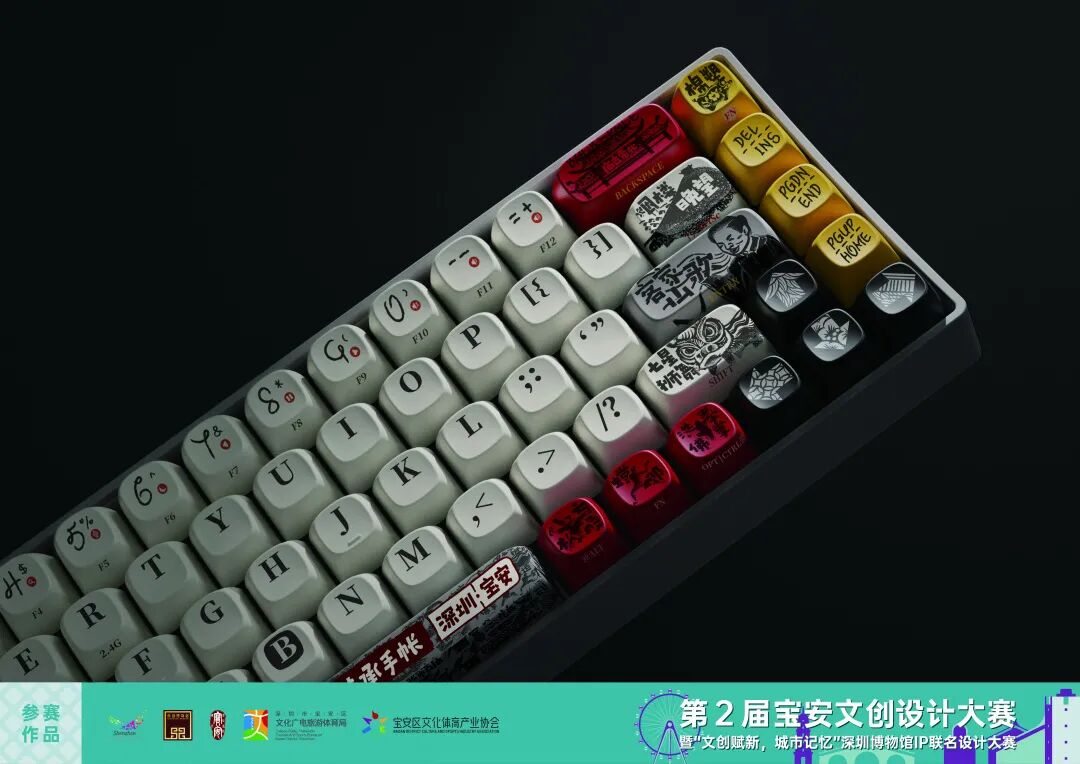 键盘是现代人输入输出的重要语言工具。本作品以小翘键盘为设计载体,用手账的视觉呈现方式,将深圳宝安的“非遗”项目,用创意插画辅以字体设计的形式,展现在键盘的键帽设计中。