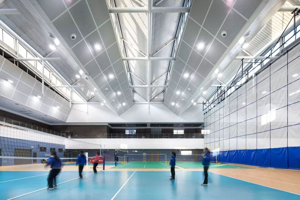 重建之前的泰达一中建筑形态支离破碎,建筑语言和符号十分繁杂,彼此独立的各功能用房,让孩子们要步行很远,才能到达食堂、体育馆和图书馆等功能空间,彼此联系较弱,交通流线也很不便。我们认为公共空间是校园建筑的灵魂所在,所以尝试用统一的建筑设计语言,将破碎的体量重新进行整合,在加强空间彼此之间联系的同时,创造服务于全体师生的活跃的公共空间。
