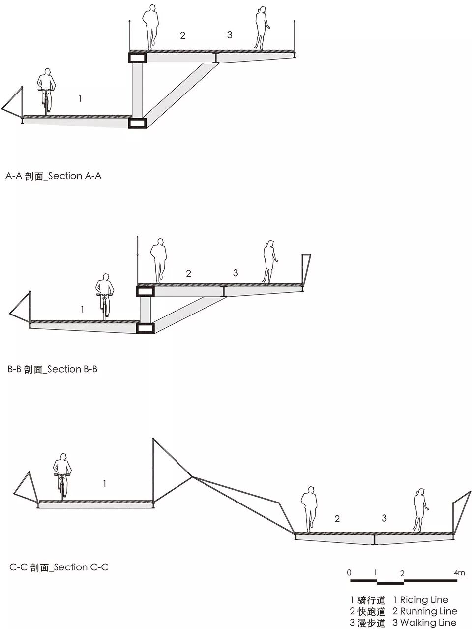 ▼骑行及漫步道区域各自拥有良好的观景视野 ©田方方