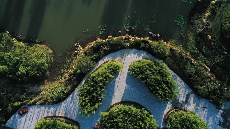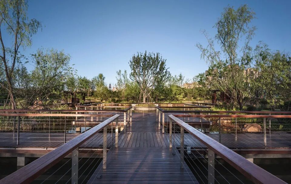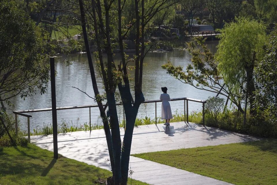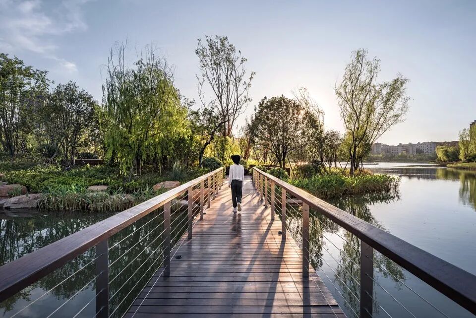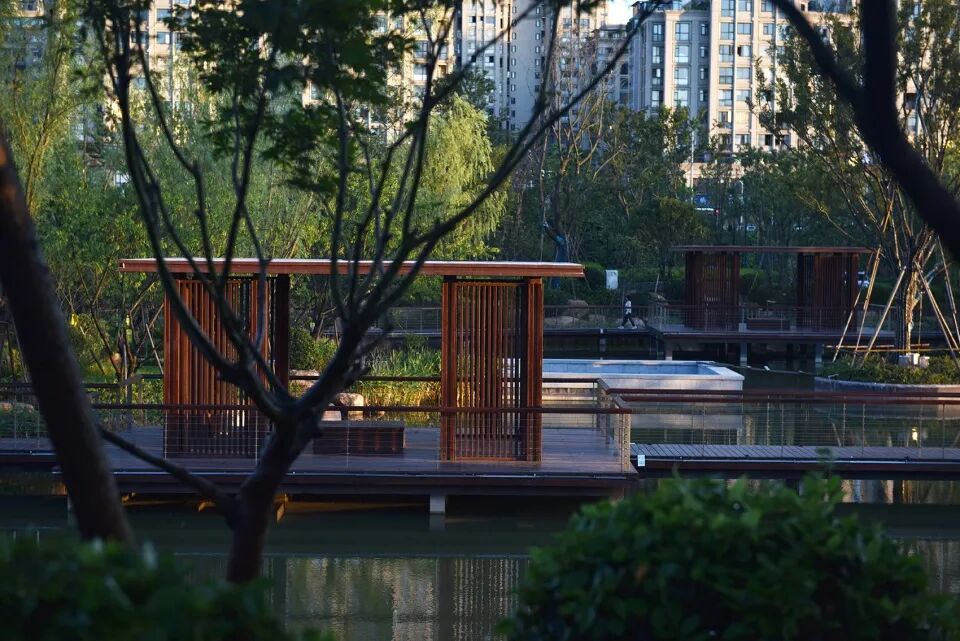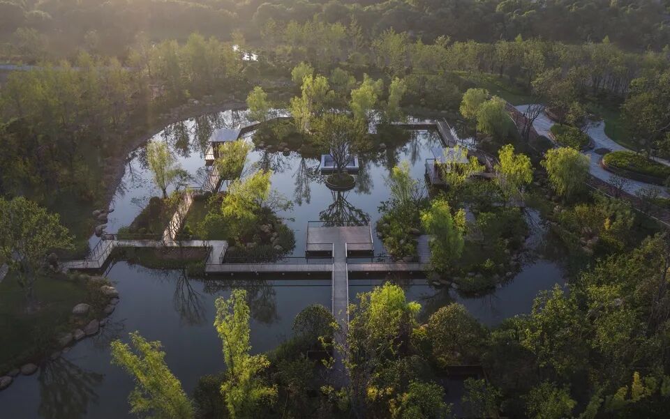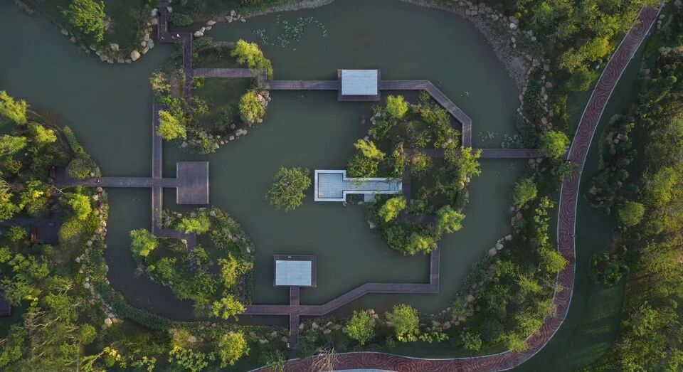▼水上构筑:静坐亭廊小筑,置身光影变幻,感知春暖夏凉 ©超越视觉