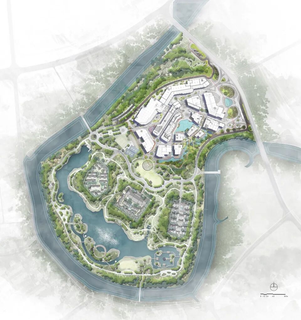 本案槠溪时光公园作为上饶槠溪河生态走廊规划十景之一,靠近南侧城区,因此定位为城市活力公园。立足于道教、山水、诗词等地域文化,以“溪畔时光·秀美纷饶·乐享逍遥”为主题,以逍遥思想为脉,串联五大板块。场地呈环水的河心岛形态,依托现状河道资源引水入园,建设活力四射的市民亲水后花园。十里槠溪水,跨越漫长的时光,将悠久的饶城历史延续至今。