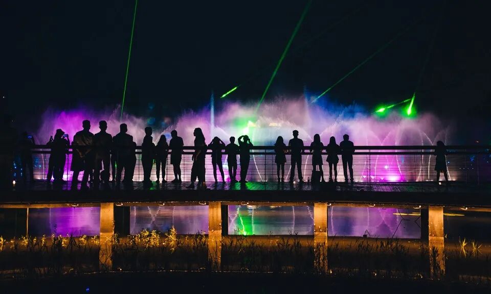 ▼水幕剧场:在公园中轴正对星宿广场之处的水面中心,制造绚烂恢弘的水幕灯光秀,伴随音乐律动,为饶城注入缤纷活力 ©超越视觉