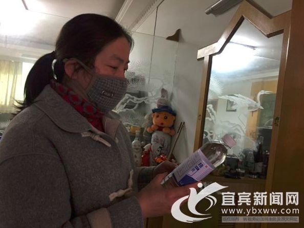 2月8日,在叙州区高场镇高场社区,领到酒精的社区书记连方秀表示,会按照每户一瓶的原则,第一时间分发到社区居民手中。