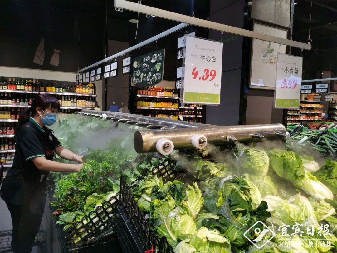 资料图:超市工作人员正在整理菜品 宜宾日报记者 蒋前川 摄