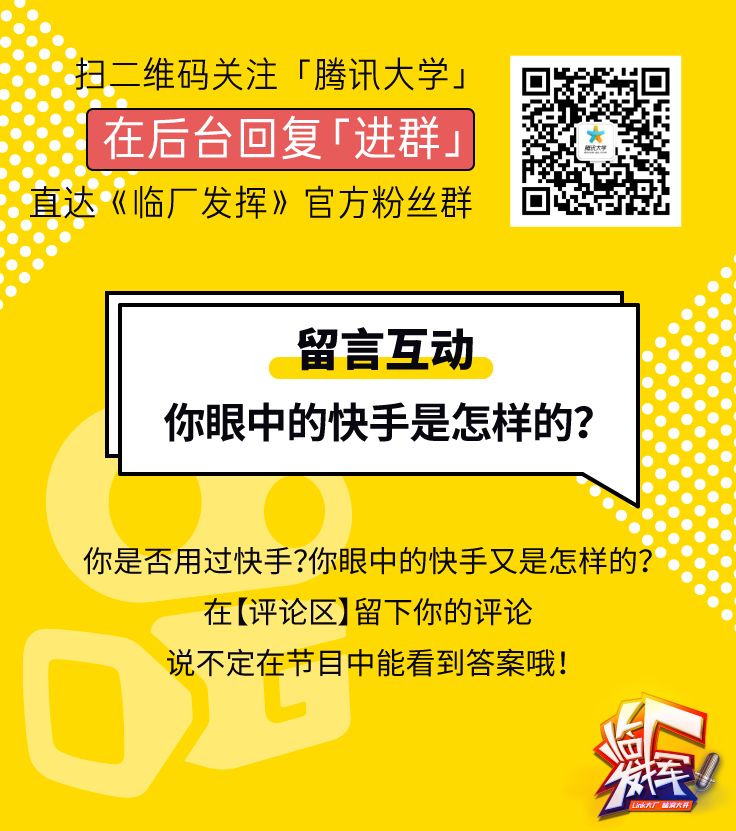 再回到这场竞争,当抖音迅速崛起时,快手怎么样了?竞争有没有把快手打倒?这些答案只能留在本周四晚《临厂发挥》中一探究竟了。