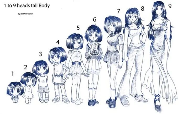 基础比例:所有正常的形象都由一个基础的头身比例得来。