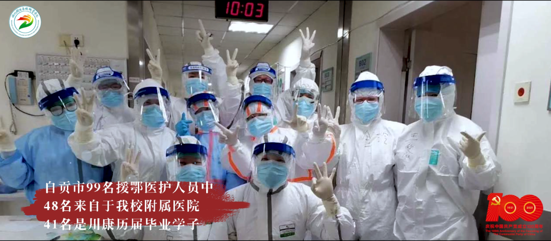 振奋人心的唱词中,川康人意气风发,朗朗乾坤下,川康人济世悬壶。每年为社会输送大批医疗卫生人才。2020年,一场突如其来的新冠疫情打乱了我们平静的生活。川康师生积极响应号召,逆行武汉,支援抗疫。在自贡市选派的99名援鄂医护人员中,48名来自于我校附属医院,41名是川康历届毕业学子……
