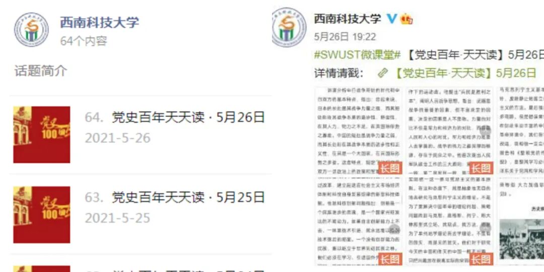 学校官方微信、官方微博推出“党史百年天天读”专题栏目。