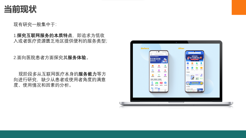 作为公共事业管理的学生,我们需要对卫生健康事业的发展和规律进行学习与研究。疫情常态化防控的背景下,互联网医疗服务无疑是一个有效保障患者就医的手段。但在实践中我们也发现了互联网医疗存在的许多问题和有待提升的方面。本次的实践项目通过从患者使用的角度出发,为互联网医疗的发展提供建议。也期待我们的研究能提升广大使用者的服务体验,也为我们在未来面对大型突发公共卫生事件提供经验和参考。