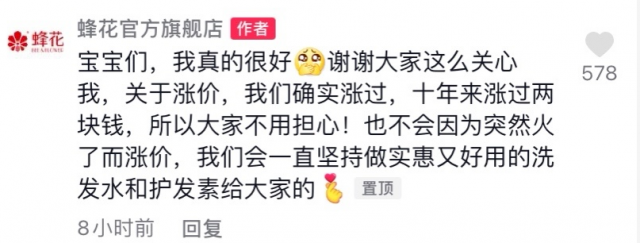 广大网友的态度更好笑,面对蜂花的辟谣充耳不闻——老板虽然是假的,蜂花的情况却是真的。底下第一条留言就是:你的福气在后头呢,给我来一箱。