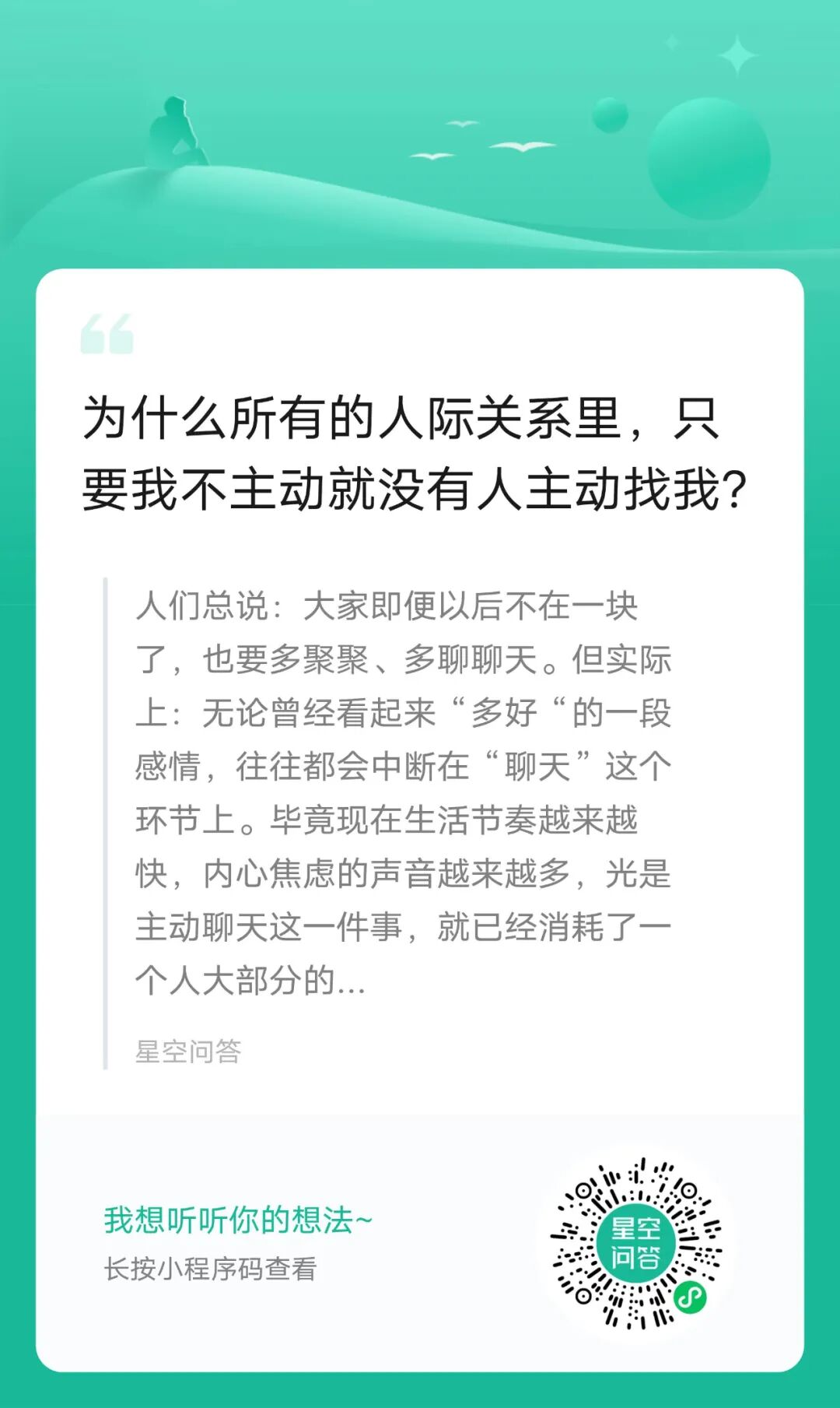 做法便是:当你清晰了自己关系里的需求和期待,跟他们聊聊,说出自己的需求和期待,可能就会收到主动联系。