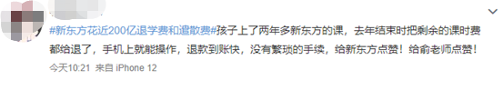 我却想说,是因为新东方把退费和补偿工作,做到了极致,然后才有了异口同声的好评。