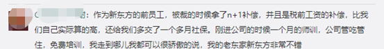 至于员工,无论是前员工、现员工,甚至是只在新东方上了一两天班的人,都被补偿了。