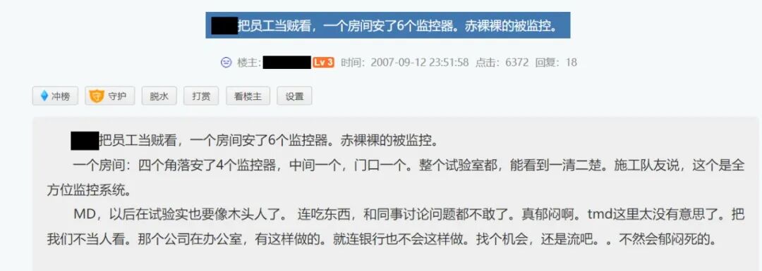 面对这样的监视,绝大多数员工为了生计都选择了忍耐,但偶尔也会出现“勇士”。