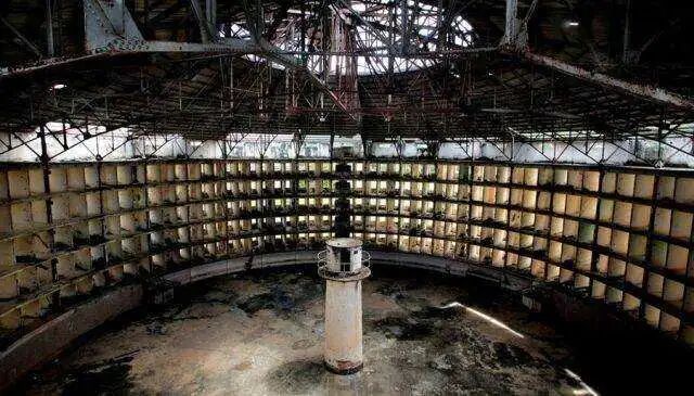 一个圆筒形的牢房,中间插一座瞭望塔,监控者能在塔上看到每个牢房的情况,给每个囚犯都有一种“他可能在监控我的压力”,从而不敢造次。