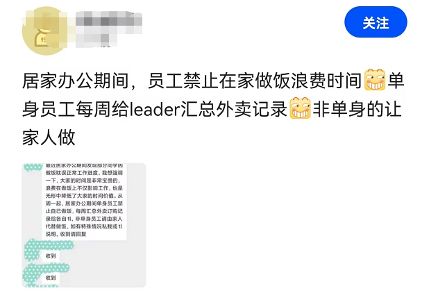 在工作日,即便名义上依然存在午休,居家做饭也成了某些领导所无法容忍的“浪费时间的行为”。
