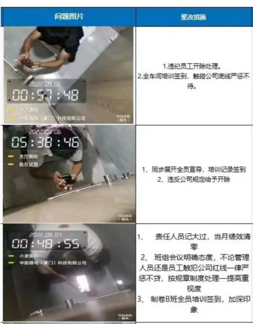 员工解完大手不冲水,系统会直接报警;员工出门不关宿舍空调,跟老家煲几个小时电话粥,凌晨1点就接到了辞退通知;甚至连公司的厨子做饭不戴厨师帽,也会迅速接到短信提醒……