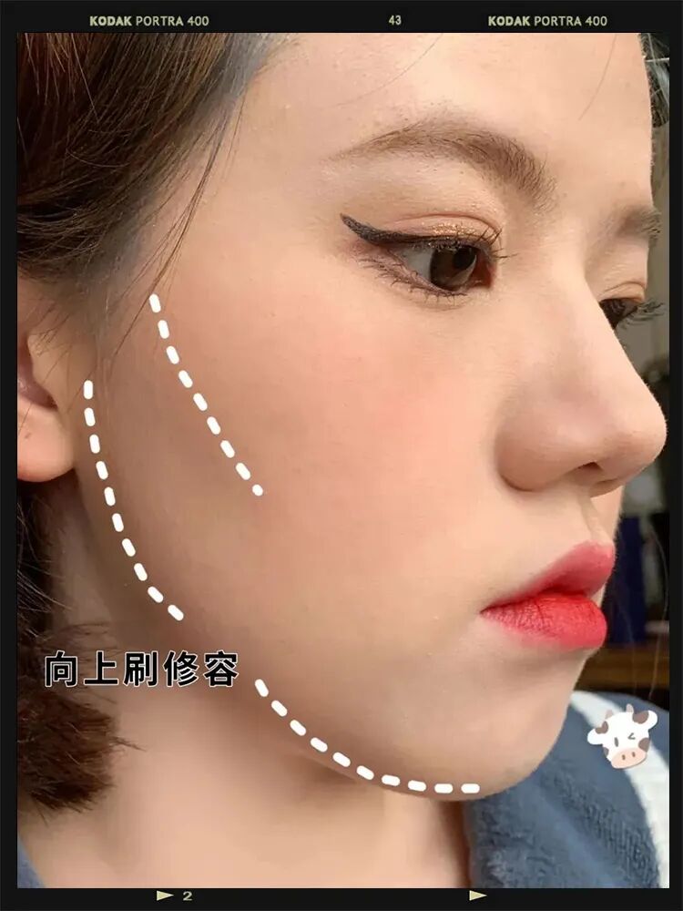 每个脸型打修容都是不同的,圆脸姐妹在下颌整个一圈的位置,狠狠地打!注意,一定自然打圈晕染,不然很显脏!