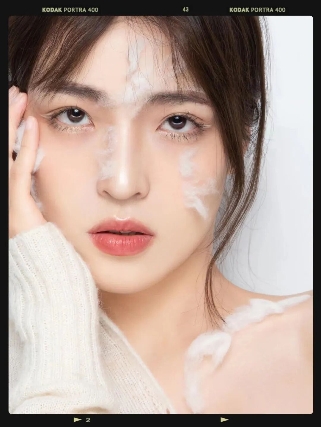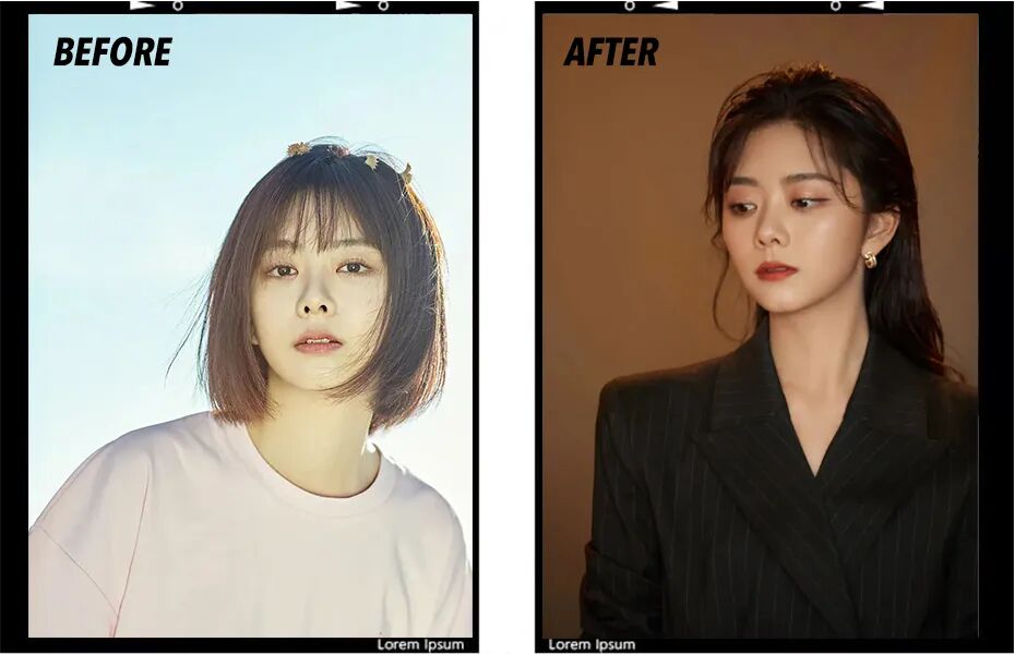 还有一个小技巧:扎头发的时候可以把头顶稍微垫高一点,瞬间拥有蓬松的高颅顶,让整体呈现一个上宽下窄的形状。