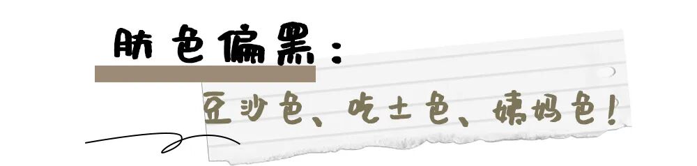 皮肤偏黑的妹纸不适合粉色、水红色等颜色,具体可以参考吉克隽逸和王菊平时使用的口红色号。吃土色、姨妈色等暗黑色系口红,会让你看起来更加有张力。![]()