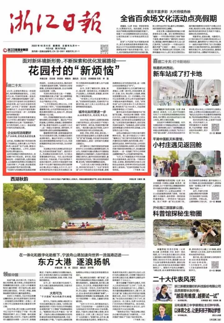 10月6日,《浙江日报》头版头条刊发《面对新环境新形势,不断探索和优化发展路径——花园村的“新烦恼”》一文,全文如下: