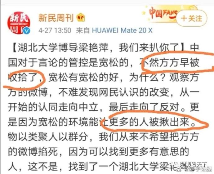 这么一条理性客观的帖文,却让那些支持方厅的人感到非常不快。不少人都想通过悲情来渲染言论不自由的气氛,这般话却又说不出口,毕竟方厅那么多道听途说甚至谣传的言论,国家非但没有进行管控,甚至还能任其在美德等国公开出版发行。你说言论不自由?是太自由了,自由已经无边了。