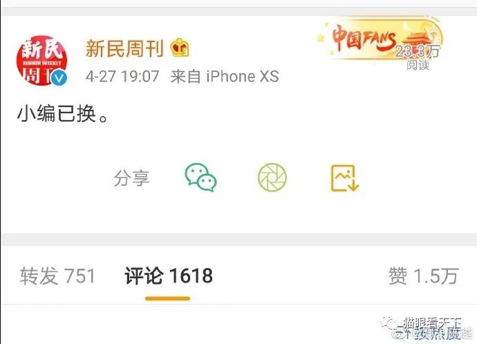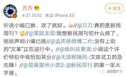 周刊的小编因为说了几句客观的话,结果居然被立马撤换。这才算是他们口称的言论自由么?双标已经到了如此令人发指的地步,就在这家周刊被众多方粉们口诛笔伐围攻之际,周刊的领导毅然作出了撤换小编的决定,令方厅却感到很欣慰:听说小编已换,改了就好!