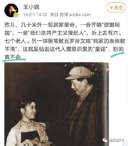 从王小尼曾经发过的帖文中,我已闻出了人渣味,一个道貌岸然,享受着体制内的待遇,却赤裸裸地攻击开国领袖,如此恶毒之女人,还能得到当地萱萱的表彰,退休了还能拿着不菲的退休金。有人反驳说:她拿工资拿退休金是应该的,因为她工作了这么多年!嗯,你还不如直接说反国家反了这么多年。