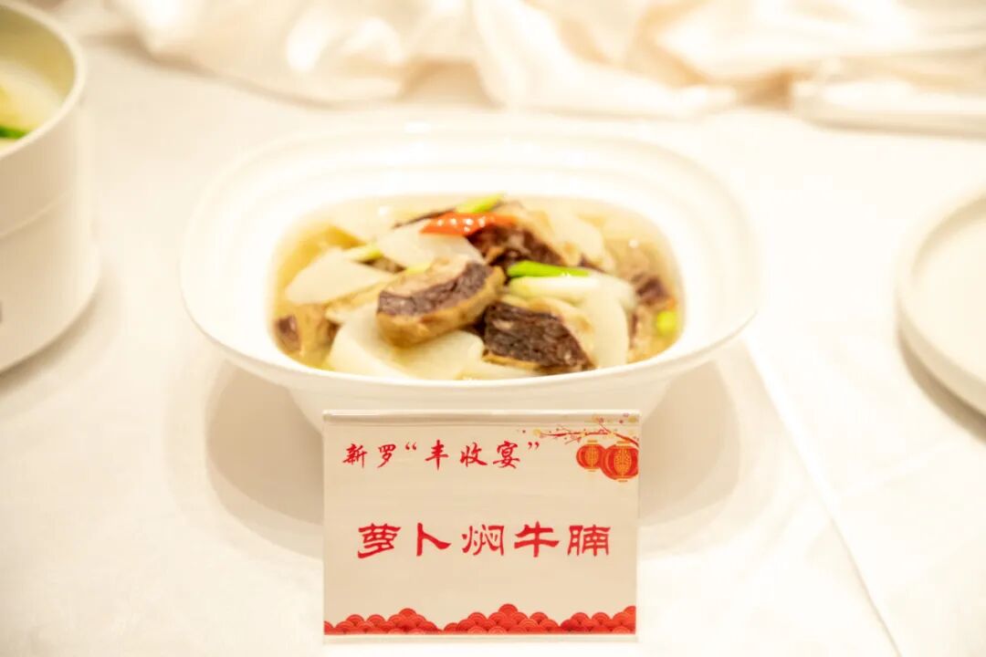 萝卜焖牛腩是龙岩宴席上的传统名菜,色泽红亮,酱香浓郁,入口浓厚,营养丰富。选用的是牛腹部的牛腩,肥中带瘦,有嚼劲,再搭配清甜爽口的白萝卜,炖得越久越入味,不禁让人胃口大开。