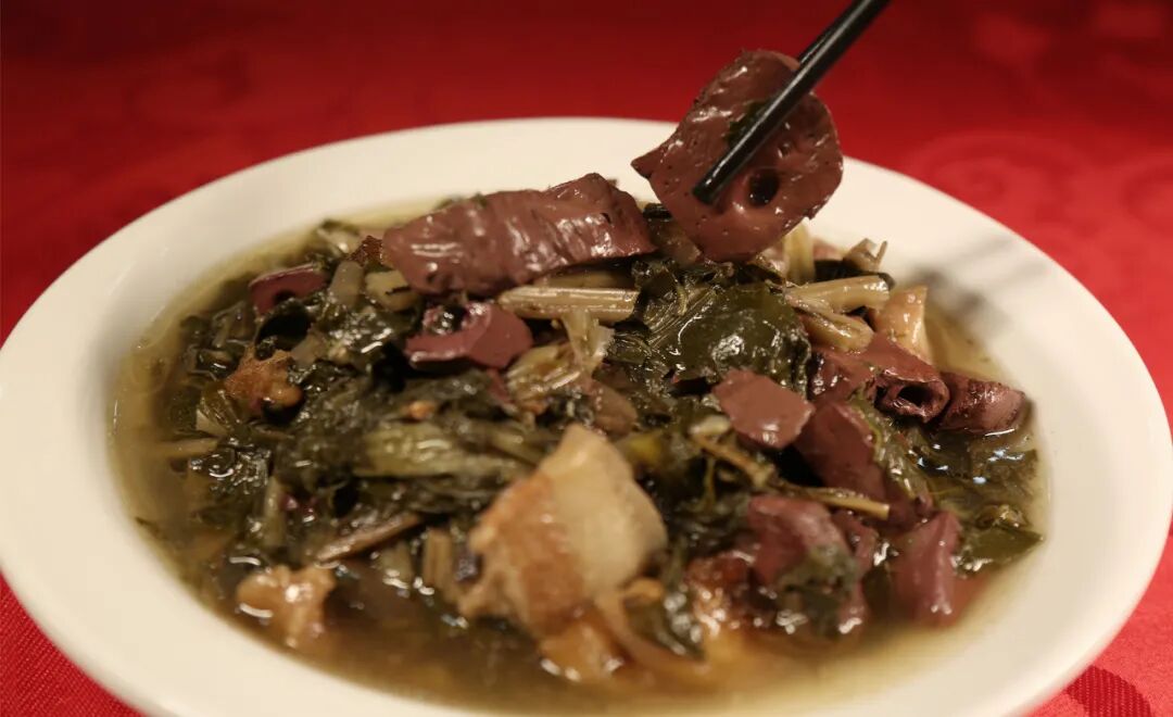 猪血菜,是龙岩白沙苏坂等地每年接近年关杀年猪时所吃的一道汤菜,里面既有汤,又有菜,深受人们的喜爱。白沙等地做杀猪菜据说也有几百年的历史,人们在杀猪时留下猪血,配以农家自制的菜干、豆干、萝卜等材料制作,在物资匮乏的年代,猪血菜是很多人心中的珍馐美味。猪血菜的做法类似于东北的杀猪菜,做法较为复杂,是新罗白沙等地的特色菜。