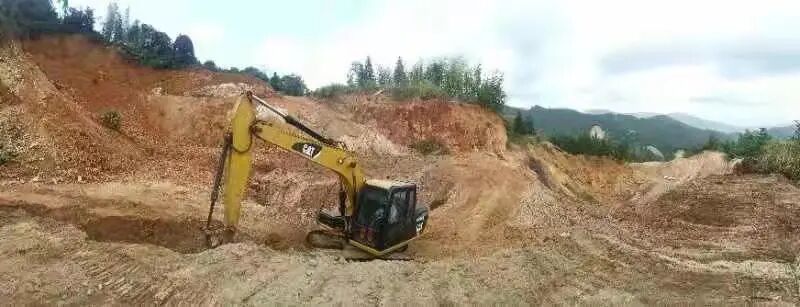 4月13日,春阳高照。新罗区适中镇莒舟邦坑的废弃矿山内,数台推土机、挖掘机来回穿梭,正在平整堆土弃石。
