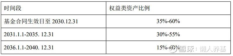 我们再来看嘉实养老2050混合(FOF),它在新修订的基金合同中明确了不同时段权益资产的投资比例如下。