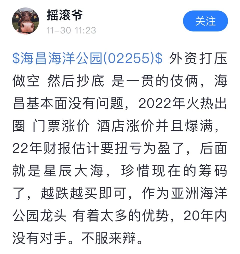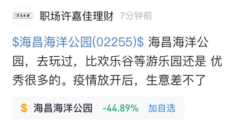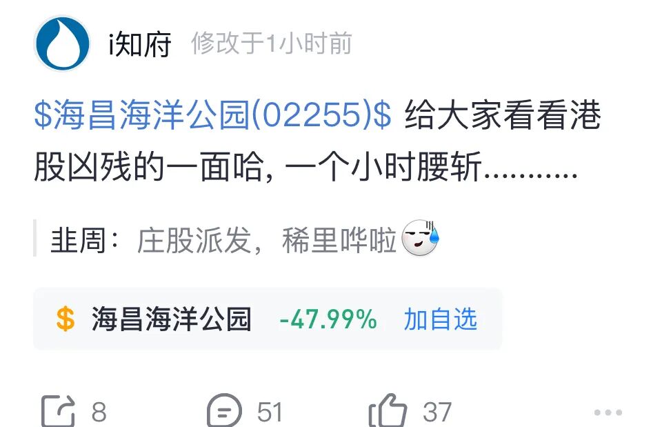今日盘中,港股海昌海洋公园突然升至雪球热股榜,个股页下球友们讨论热烈。