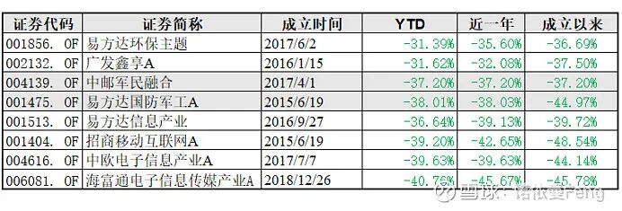 2017年为结构化牛市,可以说是“蓝筹/白马”年。易方达环保主题、中邮军民融合、中欧电子信息成立于2017年,业绩非全年业绩。海富通电子信息成立于2018年12月26日,有两年业绩缺失。