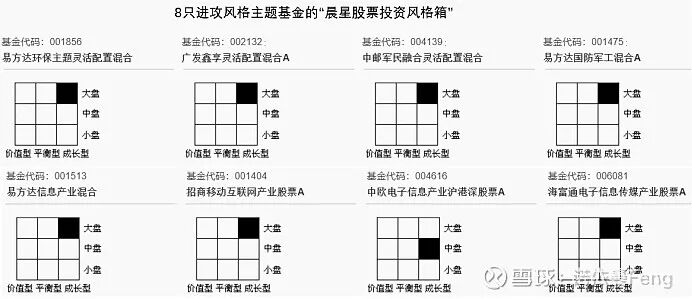 按照晨星基金的股票投资风格“九宫格”,8只基金均为“成长型”投资风格。其中,中欧电子信息产业A为“中盘成长型”,其余7只均为“大盘成长型”基金。