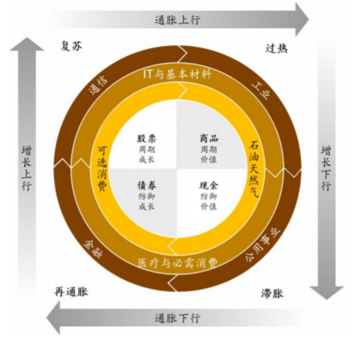 与这个逻辑相似的还有一个故事:美林时钟就在这儿,作为个人投资人,你说该要怎么买?是很难的,对吧?其中涉及到概念的细化、数据的细化、极端风险的应对,想单纯依靠一句话就以为囊括投资之道,可能是对市场有效性的一种不“尊重”。