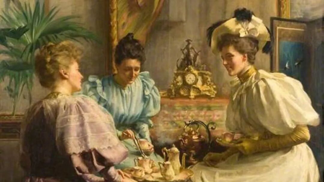 “下午茶”室在19世纪的欧洲迅速蔓延,这样的场合逐渐变成了贵族小姐们社交与八卦的地方,同时,这样的地方也兼并起了为上流社会的年轻人笼络资源功能。这样的下午一般发生在酒店中,淑女们喜欢穿着紧紧的束腰长裙,游刃有余的出现于各种下午茶场合,下午茶似乎在当时成为了一种代表阶级的象征。