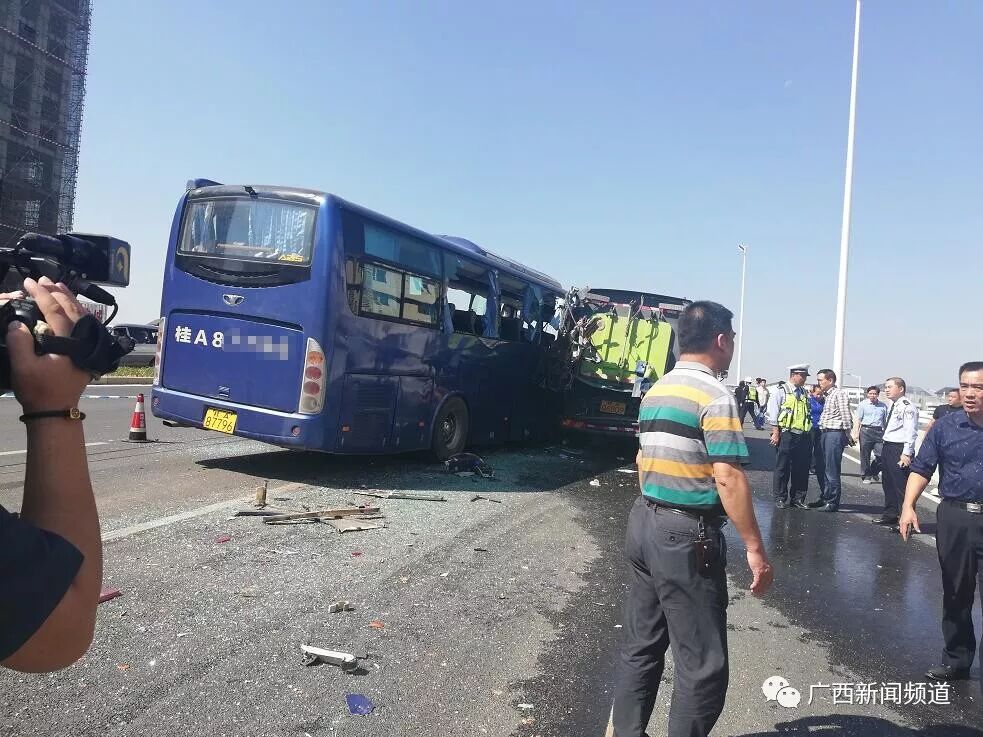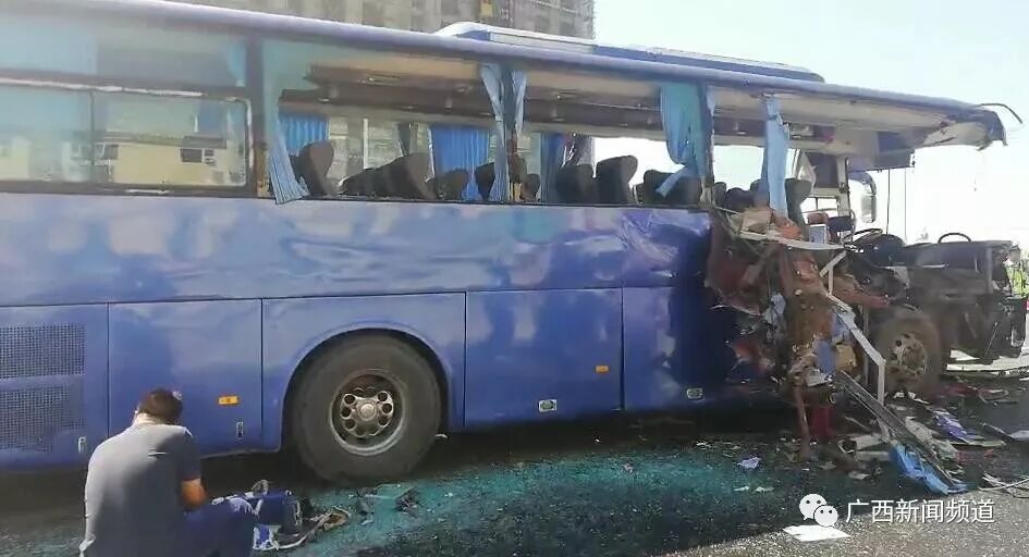 事故造成大巴车上4~5名乘客不同程度受伤,目前正在医院救治,