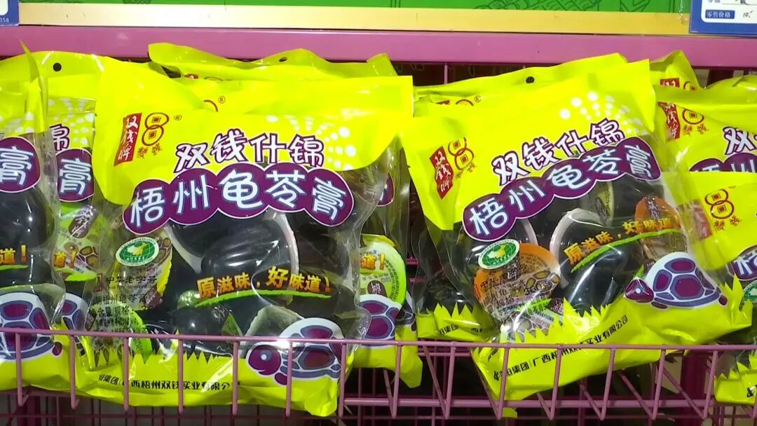 在两广地区,有喝凉茶,吃龟苓膏的传统,其中,广西梧州双钱牌龟苓膏特别具有代表性,可以说是享誉海内外,畅销全球,现在的龟苓膏,除了有传统的罐装,盒装,果冻装,还有年轻一代喜爱的可吸袋包装,2017年,双钱实业的营业总收入就超过了一个亿。