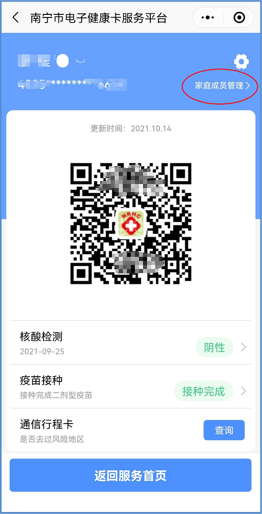 (1)微信扫码 | (2)右上角“家庭成员管理” |