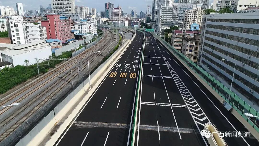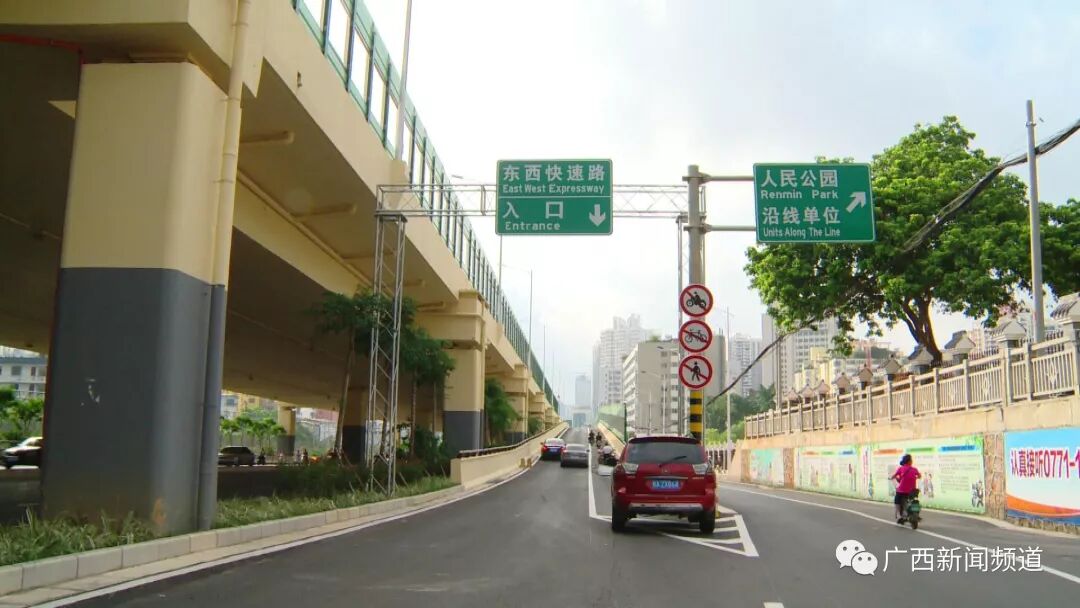 记者了解到,东西向快速路项目于2014年8月开工建设,建设分为东西两段,东段为厢竹大道至园湖路,西段为园湖路至清川大道。项目东段于2017年9月15日正式通车,有效分流了南宁市通行长堽路、东葛路的车流。
