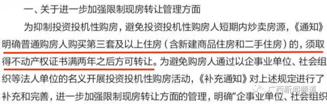 交了各种款项后,谢女士以为房子很快就能过户。谁知三个月后,11月2日,她突然接到销售顾问电话说房子过不了户,因为卖主名下的房子超过了三套。根据2017年9月25日南宁市住房保障和房产管理局发布的《关于进一步加强房地产市场调控促进房地产市场平稳健康发展的补充通知》相关解读,普通购房人购买第三套及以上住房的,须取得不动产权证书满两年之后方可转让。而谢女士打算买的这套房子,房主是2019年7月才买的,还达不到转让年限。