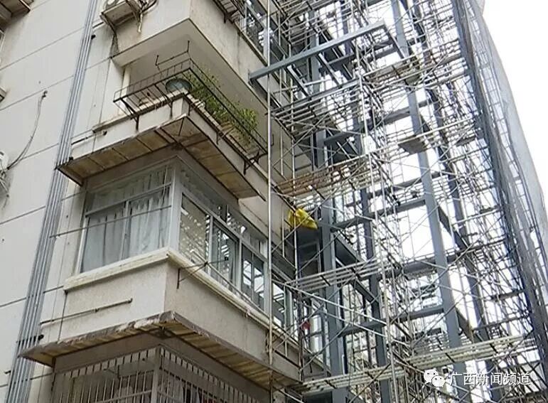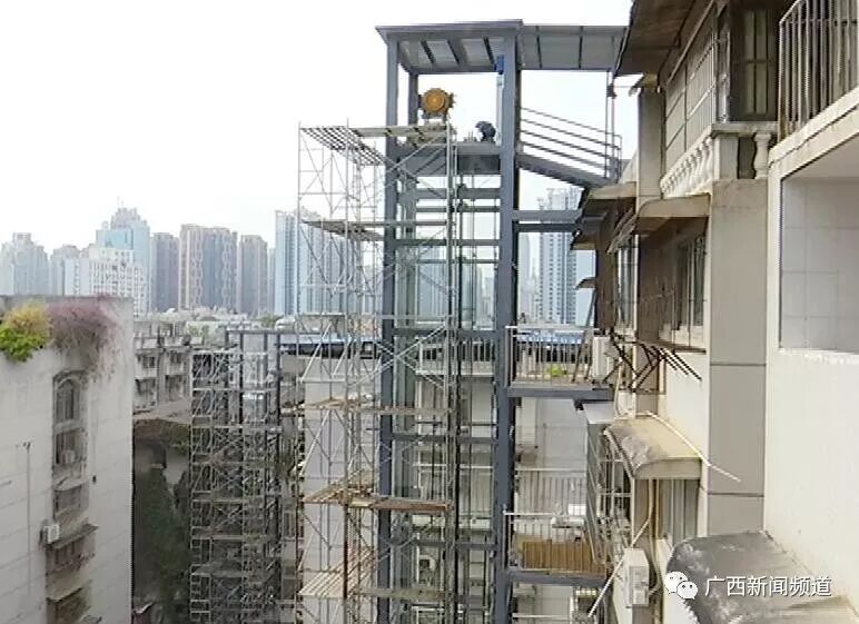 广西群众艺术馆生活小区加装电梯负责人 蓝源聪:现在看见它已经是装得基本上完工了80%左右,再过一个月,这两台梯就可以使用了,他们现在有些原先没签字同意的,现在有些也交钱进来了。