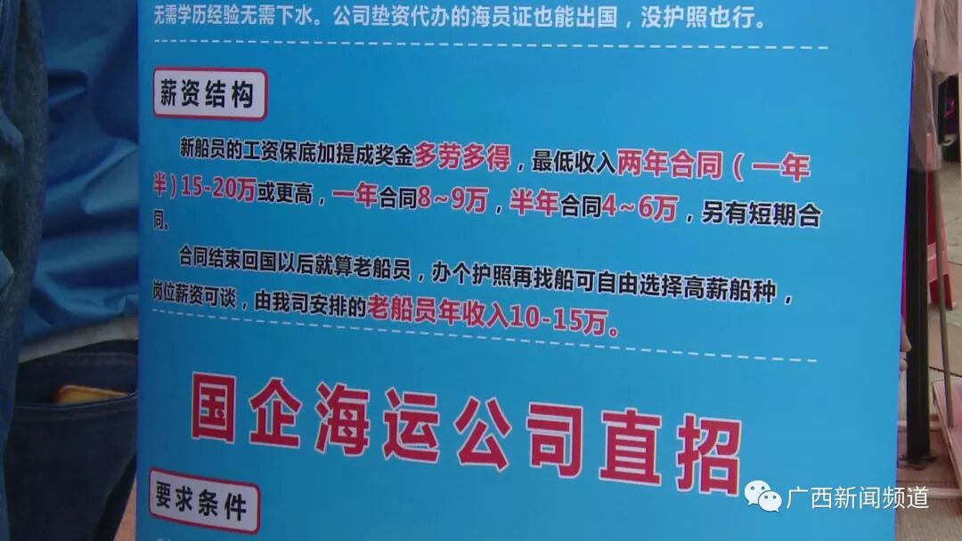 广西中帆船务有限公司经理 刘绍添:这个吃苦耐劳肯定要有了,另外一个我们船上我也跟他们讲了,一定要顶得住寂寞,因为一出海我们是半年一个周期或者是一年一个合同期。