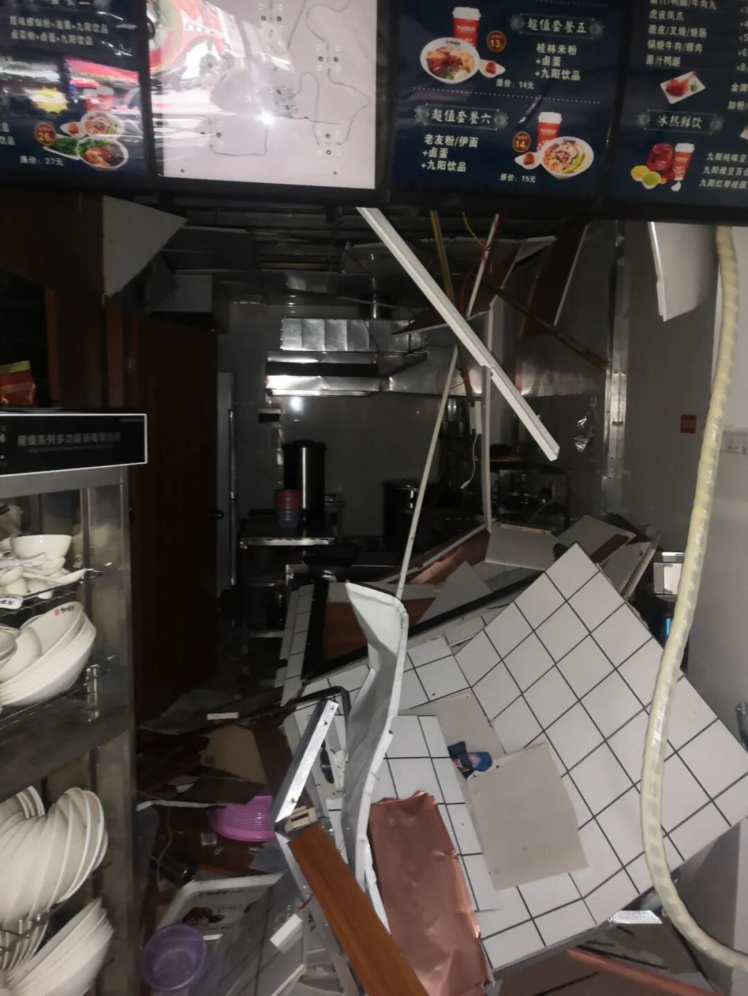 记者第一时间赶到现场,看到发生爆炸的铺面前被拉起了警戒线,店内一片狼藉,现场没有明火。