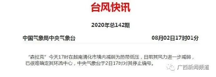 广西气象台发布解除台风蓝色预警