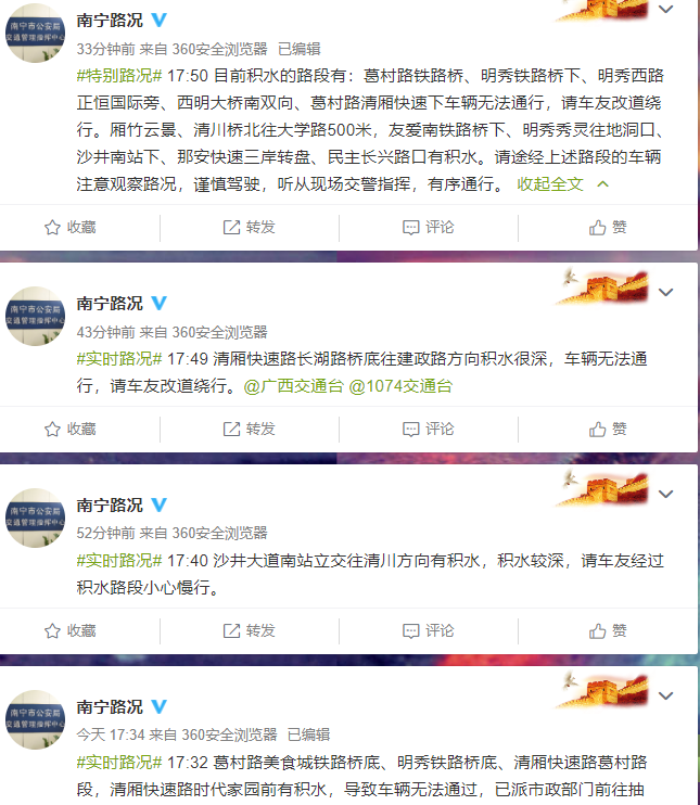 部分来源 | 中国天气网 @南宁路况 南国早报